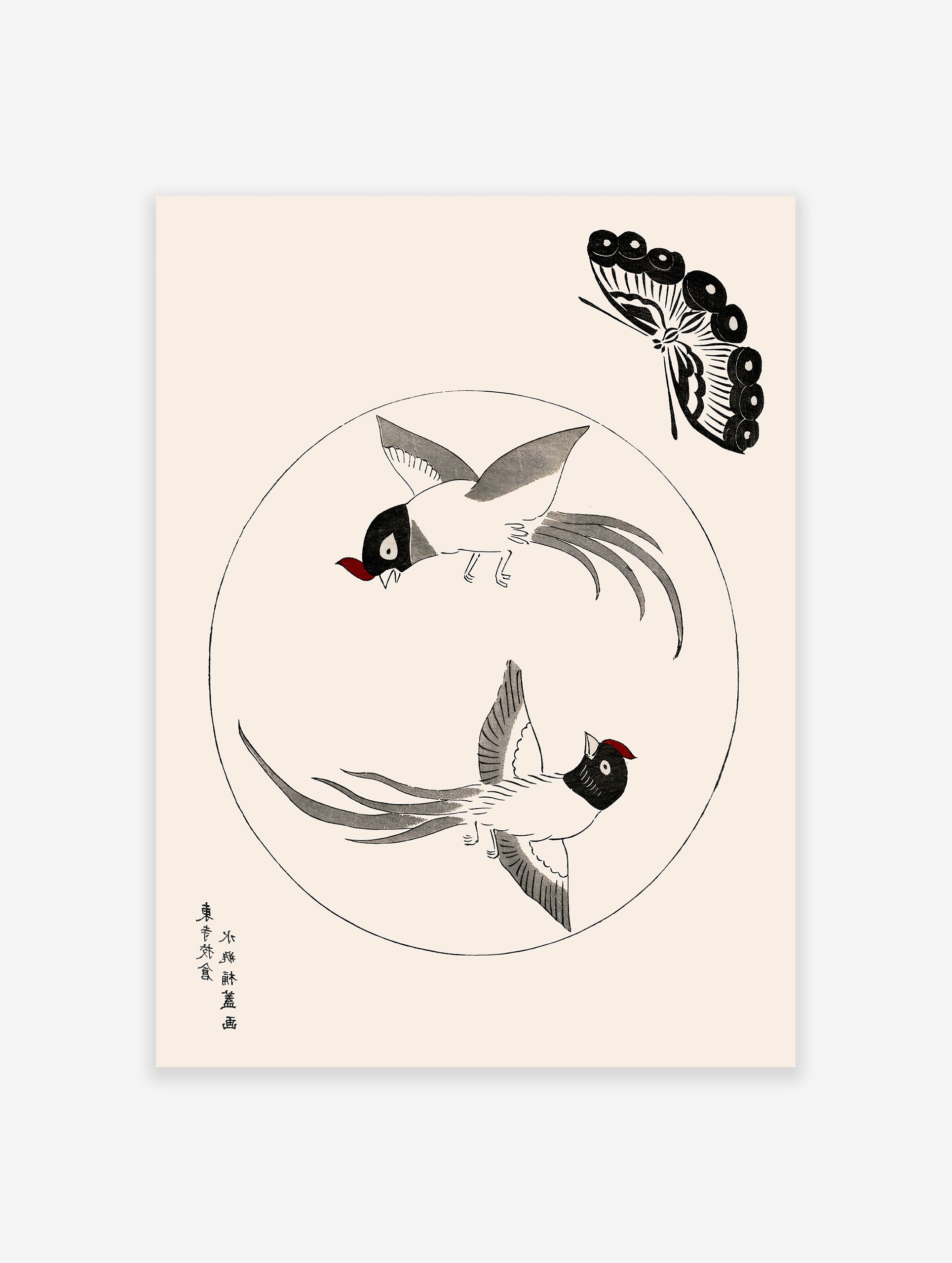 Bird and Butterfly Poster by Taguchi Tomoki, Taguchi Tomoki Print