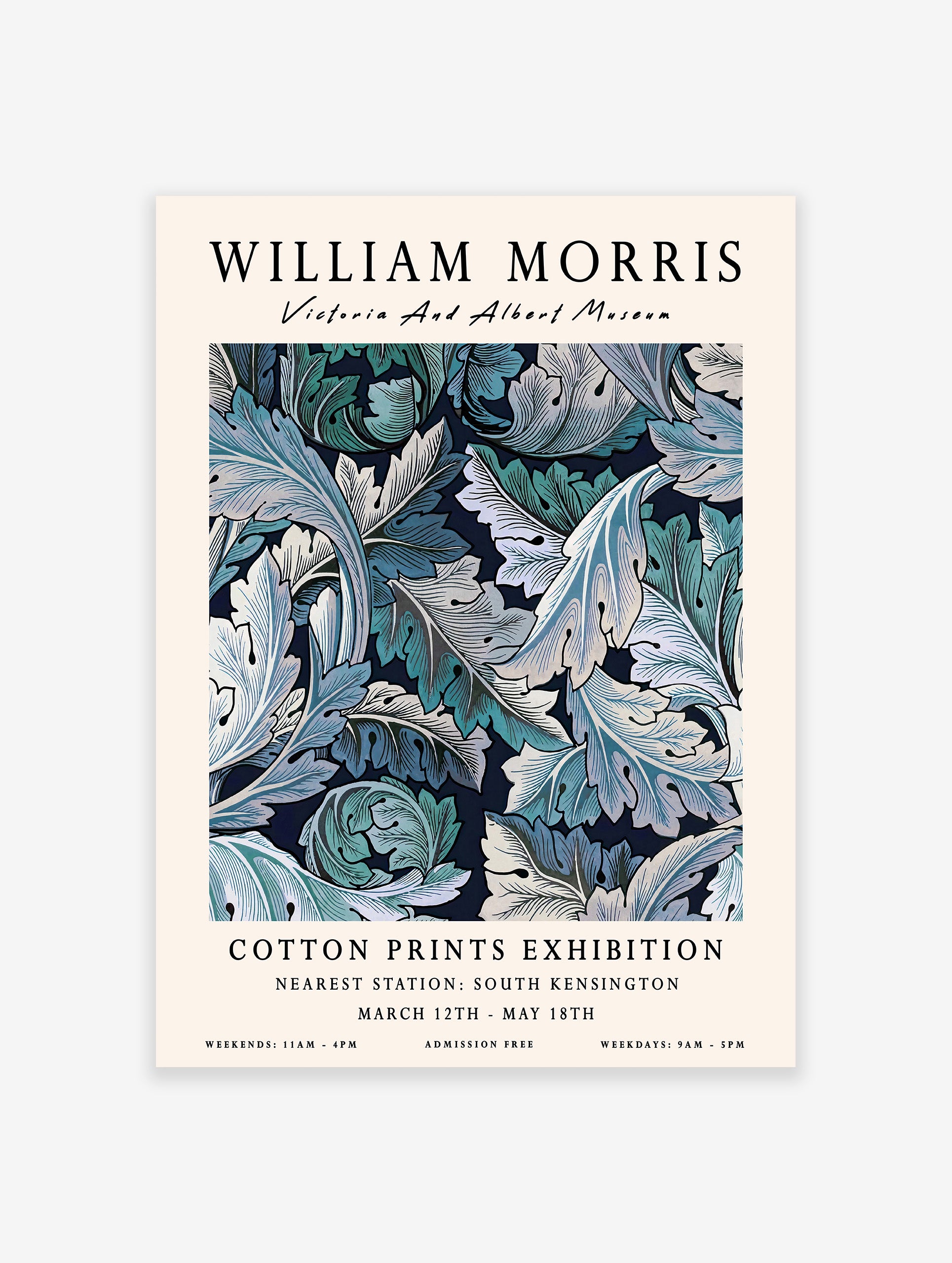 Blue Acanthus Leaves Poster by William Morris, William Morris Print