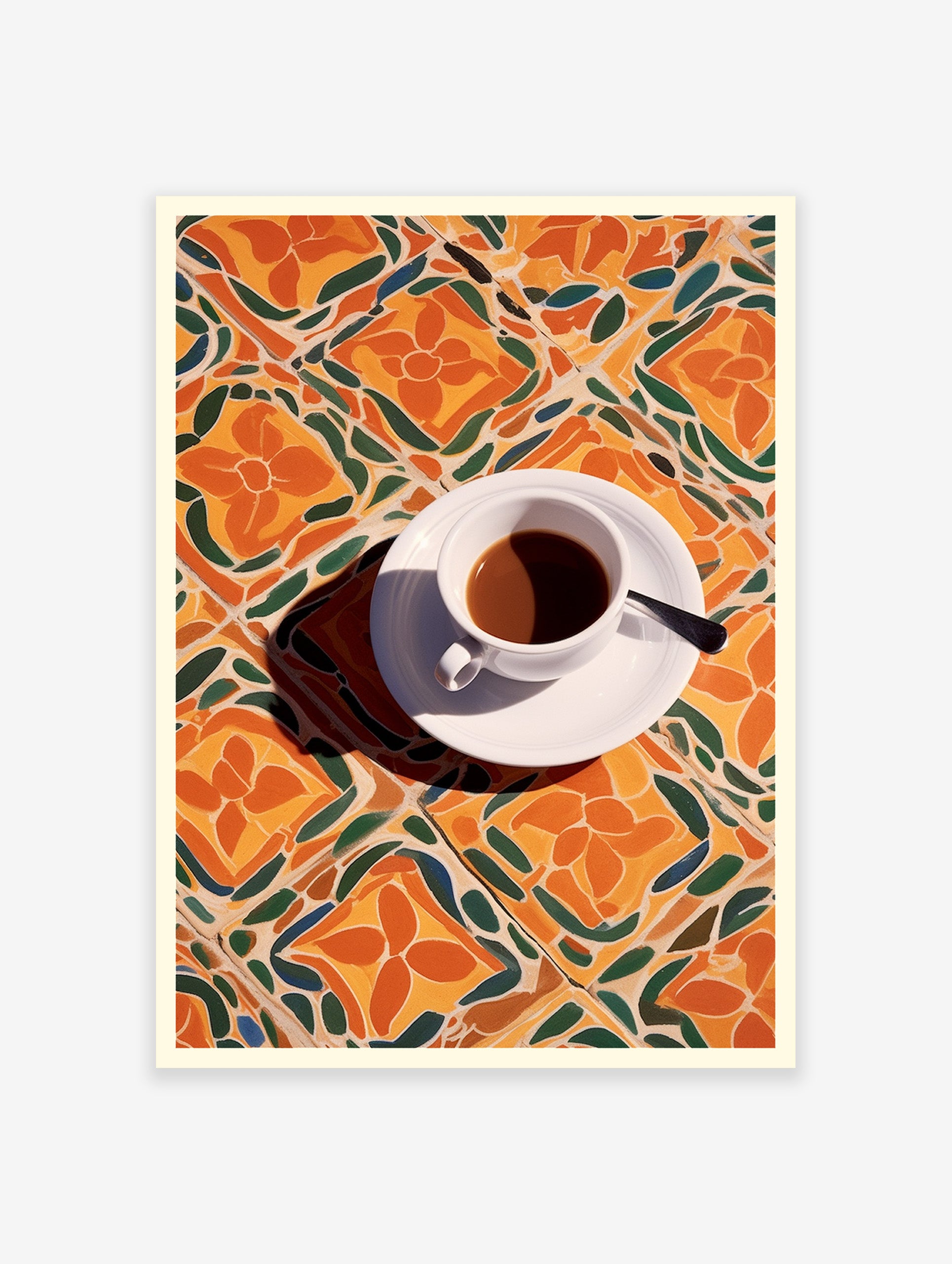 Elevate your decor with our Coffee Art Illustration showcasing a captivating cup of aromatic brown coffee against a warm orange backdrop, ideal for coffee aficionados seeking vibrant wall accents.