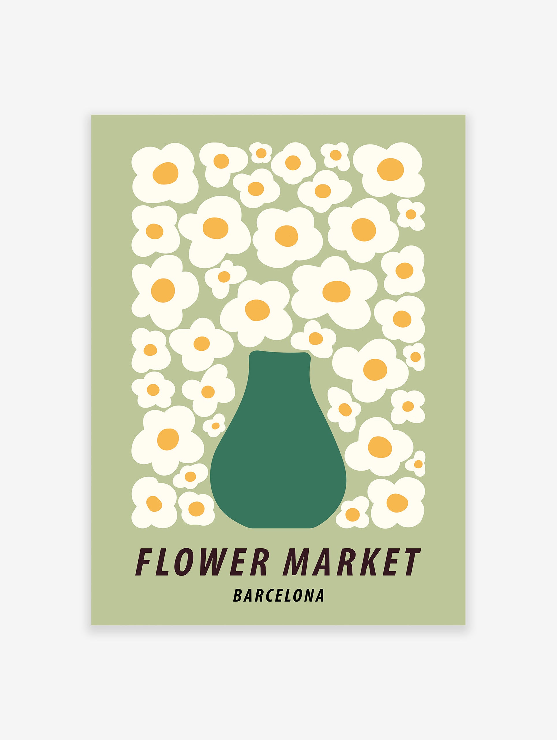 Discover the serene allure of this Barcelona themed Flower Market Print, featuring minimalist floral art that adds a refreshing touch of greenery to any space. Elevate your decor with this captivating poster, perfect for those seeking a harmonious blend of simplicity and natural beauty.