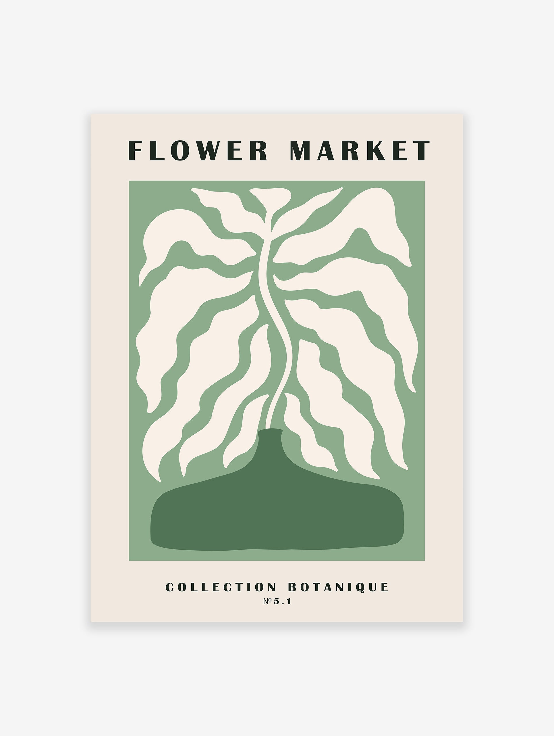 Enhance your living space with the serene beauty of Flower Market Wall Decor, featuring a minimalist floral plant in soothing green hue. Perfect for adding a touch of botanical elegance to any room, this poster is a must-have for nature lovers and interior design enthusiasts alike.