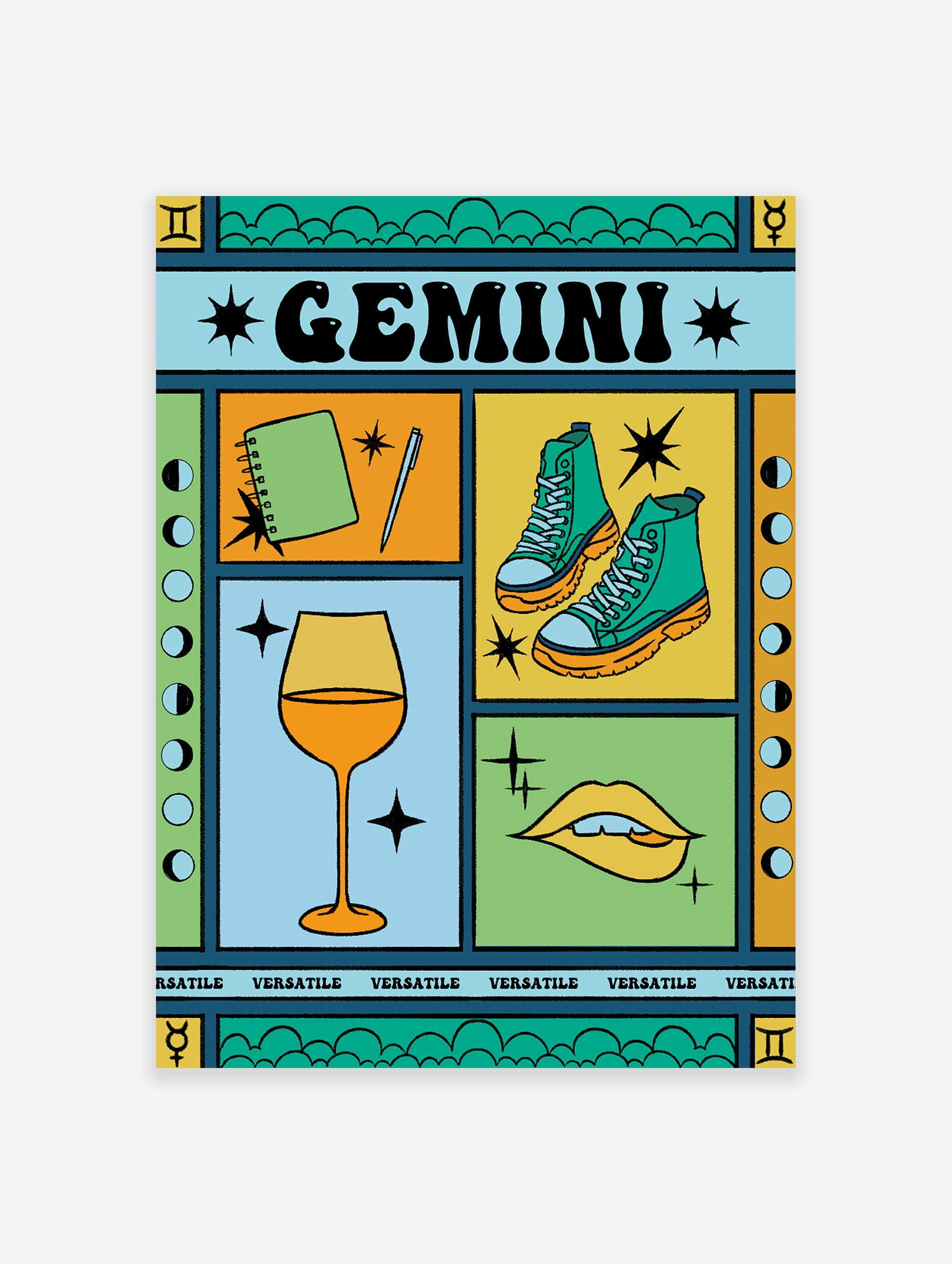 Gemini Zodiac Poster, Gemini Zodiac Star Sign Print