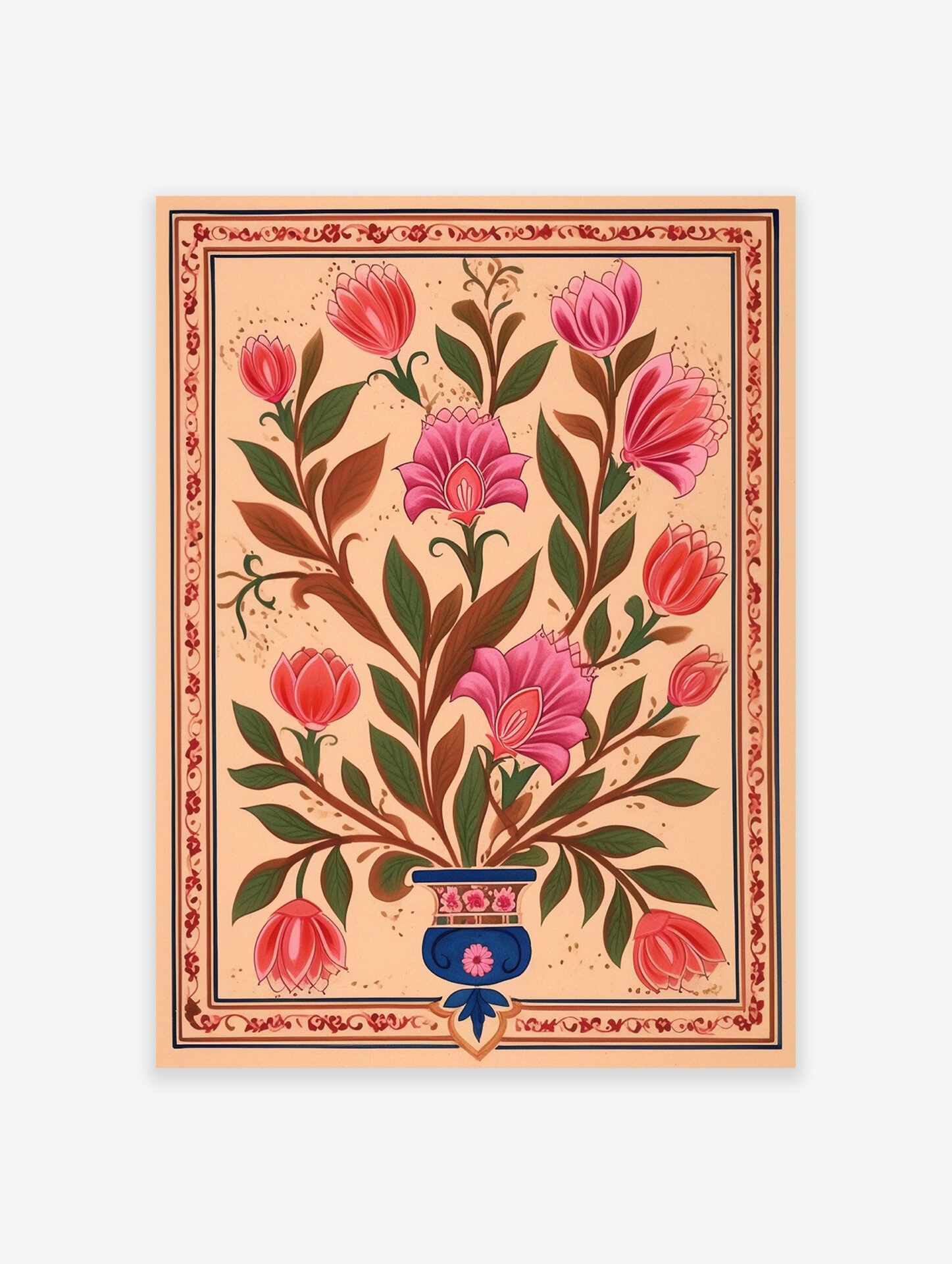 Illuminate your space with the vibrant allure of our Indian Floral Poster, perfect for enthusiasts of traditional Indian art and Indian wall art seeking to infuse their surroundings with the rich colors and intricate patterns of Indian decor.