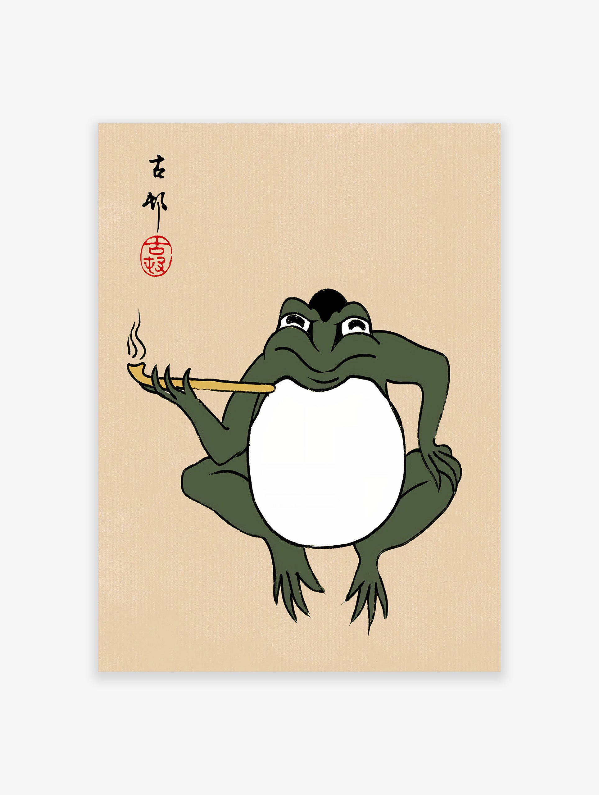 Add a touch of humor to your decor with this Matsumoto Hoji Frog Print, featuring a funny frog holding a smoke pipe. Celebrate the beauty of nature and Japanese artistry with this charming animal poster.
