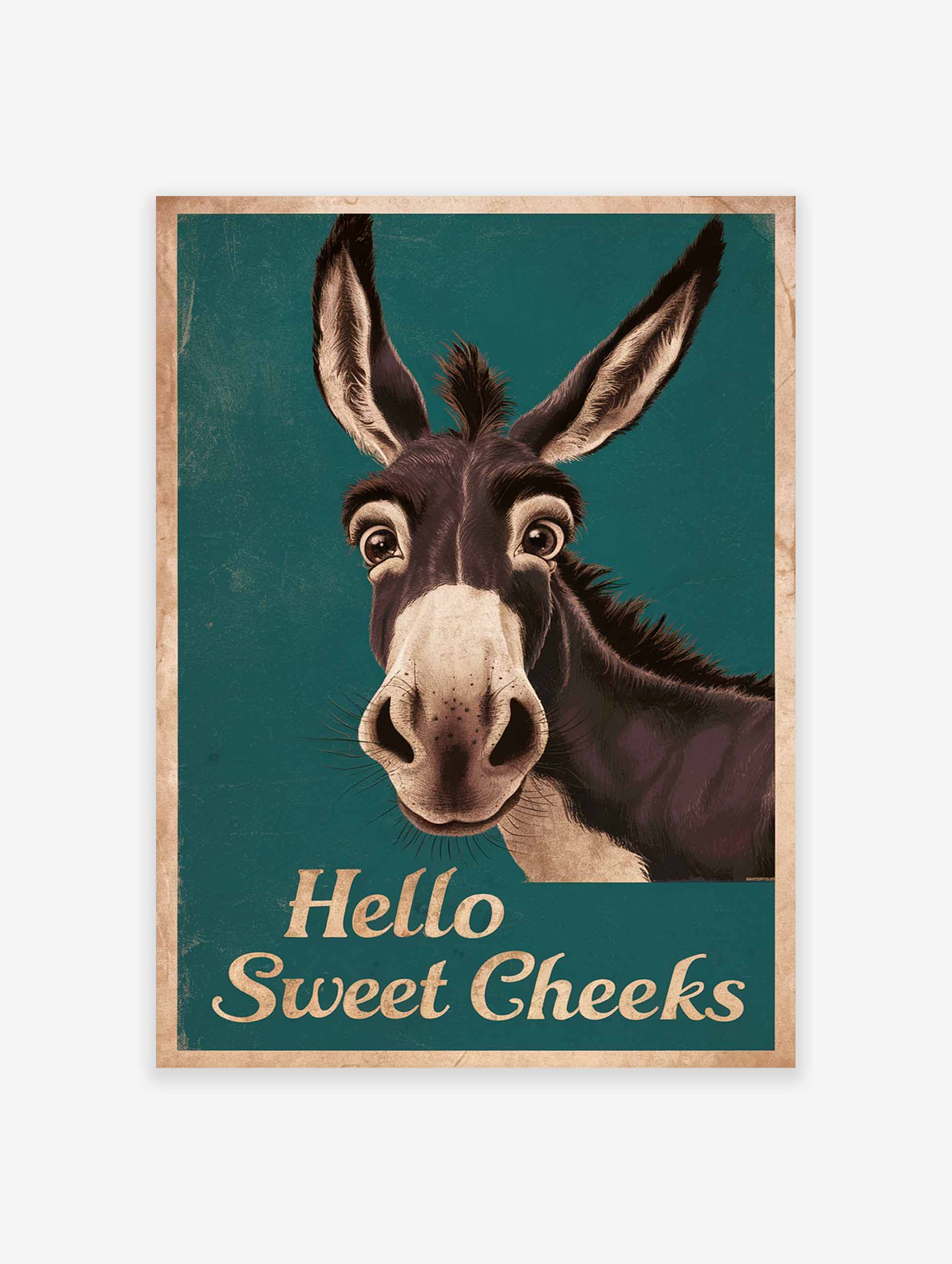 Add a touch of humor and charm to any space with our Donkey Poster featuring the playful phrase "Hello Sweet Cheeks" in bold lettering. Perfect for animal lovers or those in need of a smile, this poster is sure to brighten up your day!