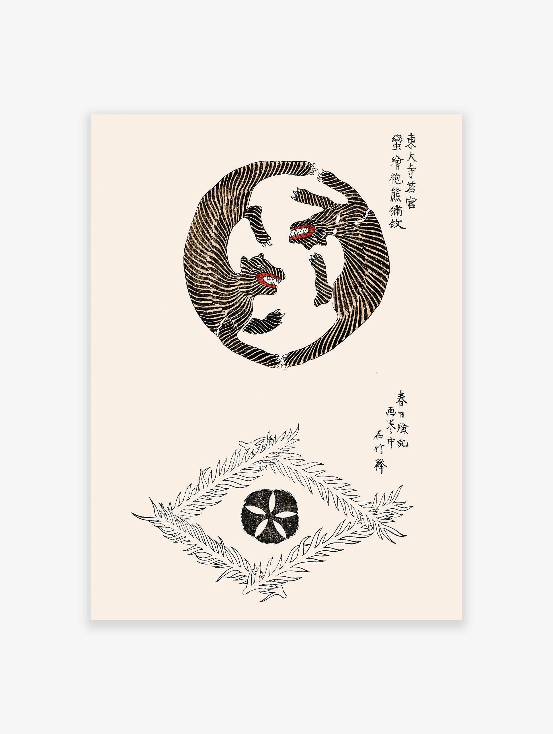 Elevate your space with this captivating Japanese Woodblock Print by Taguchi Tomoki, showcasing a striking black and white tiger and botanical print, perfect for adding a touch of nature-inspired charm to your decor.
