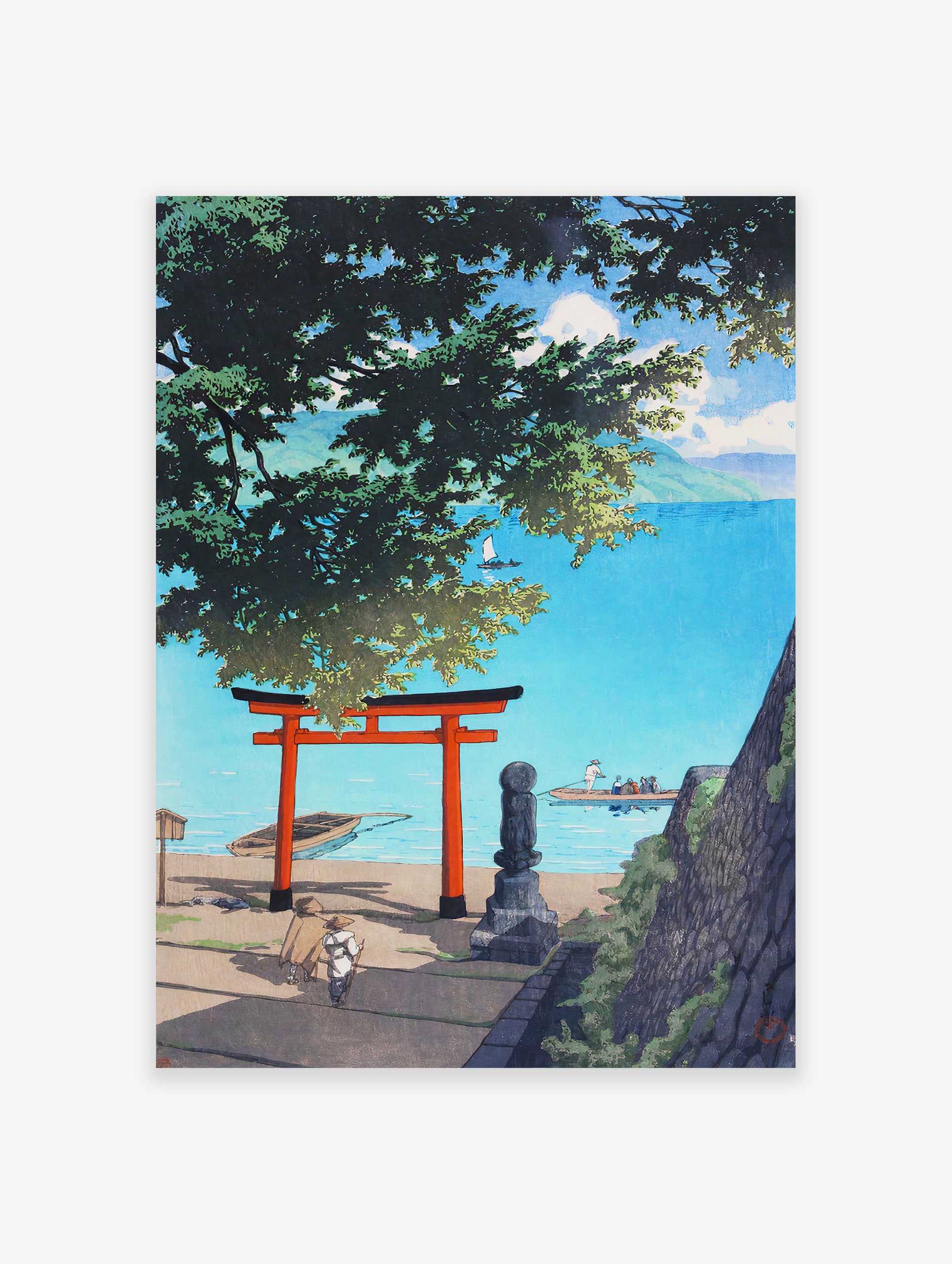 Capture the tranquility of nature with this exquisite Kawasi Hasui Poster, featuring the serene beauty of Lake Chuzenji bathed in calming blue tone. This poster is a testament to Hasui's skill in portraying landscapes, making it a perfect addition to any Japanese art lover's collection.