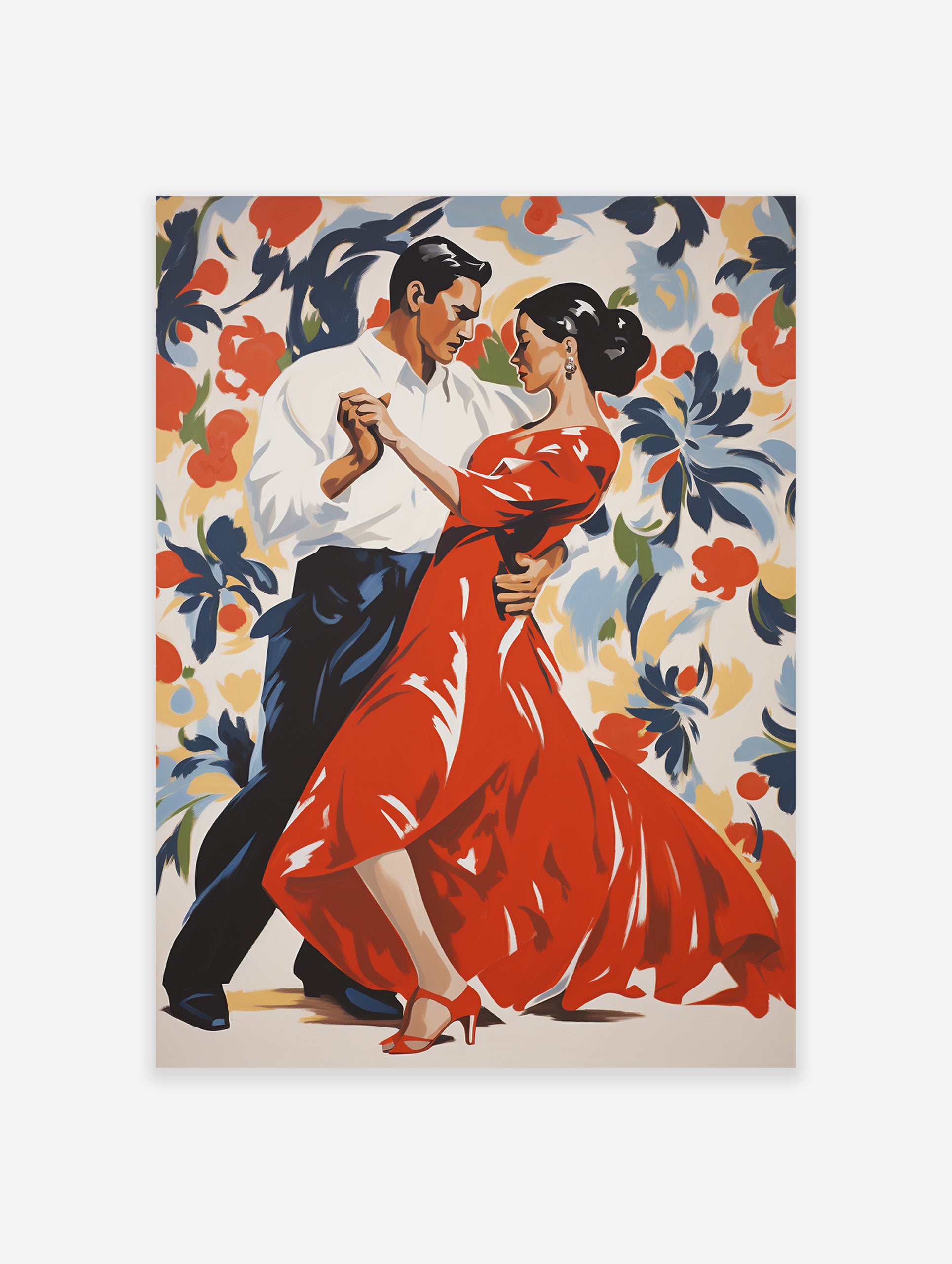 Add flair to your space with our Latin Dance Wall Art featuring a captivating partner dancing a traditional Latin dance in a vibrant red dress, perfect for dance enthusiasts and home decor enthusiasts alike.