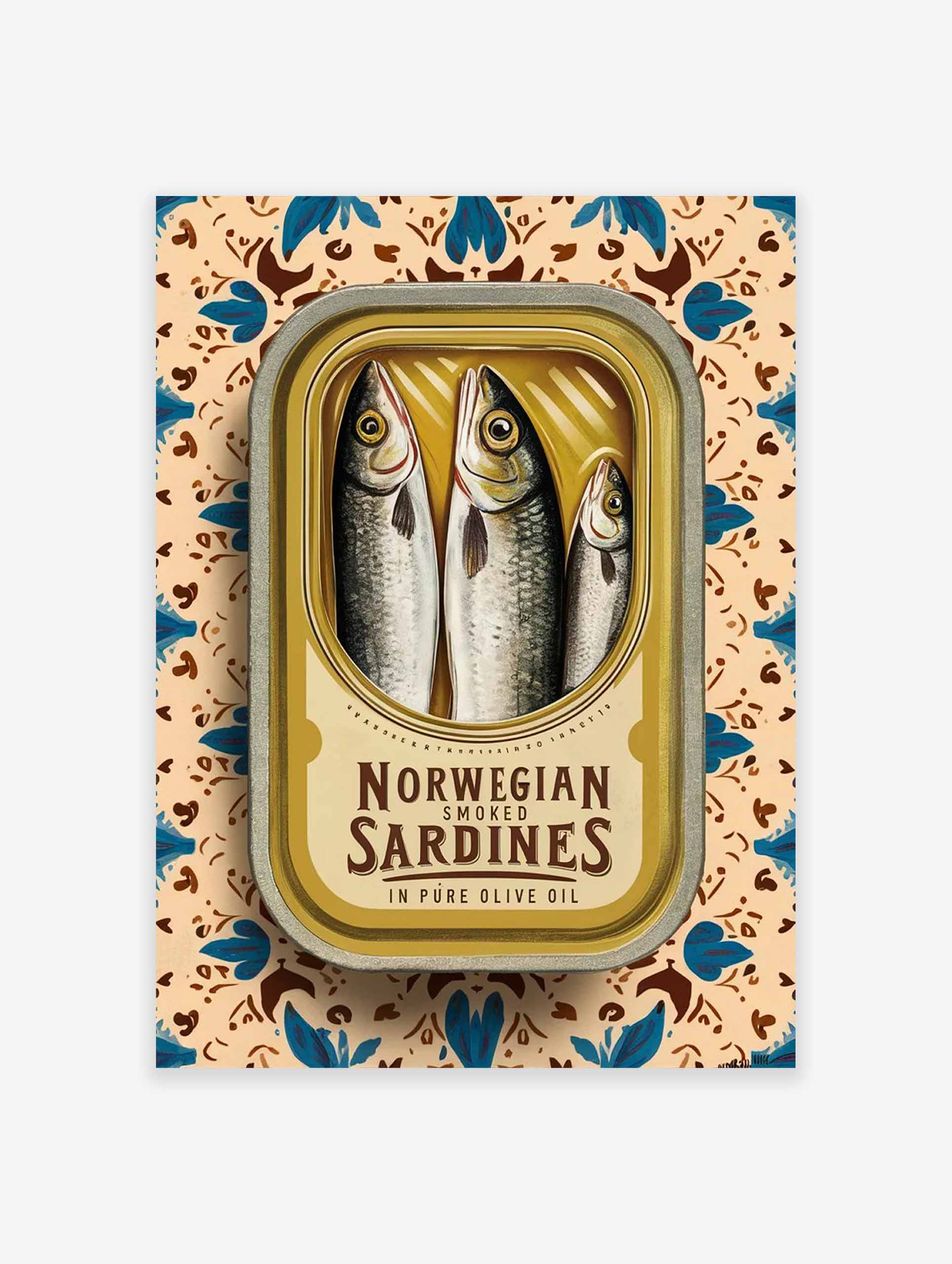 Experience the mouth-watering flavors of smoked sardines with this beautiful poster. Perfect for seafood lovers, it's a stunning addition to any kitchen or dining room. Hang it up and indulge in the deliciousness of smoked sardines whenever you please.