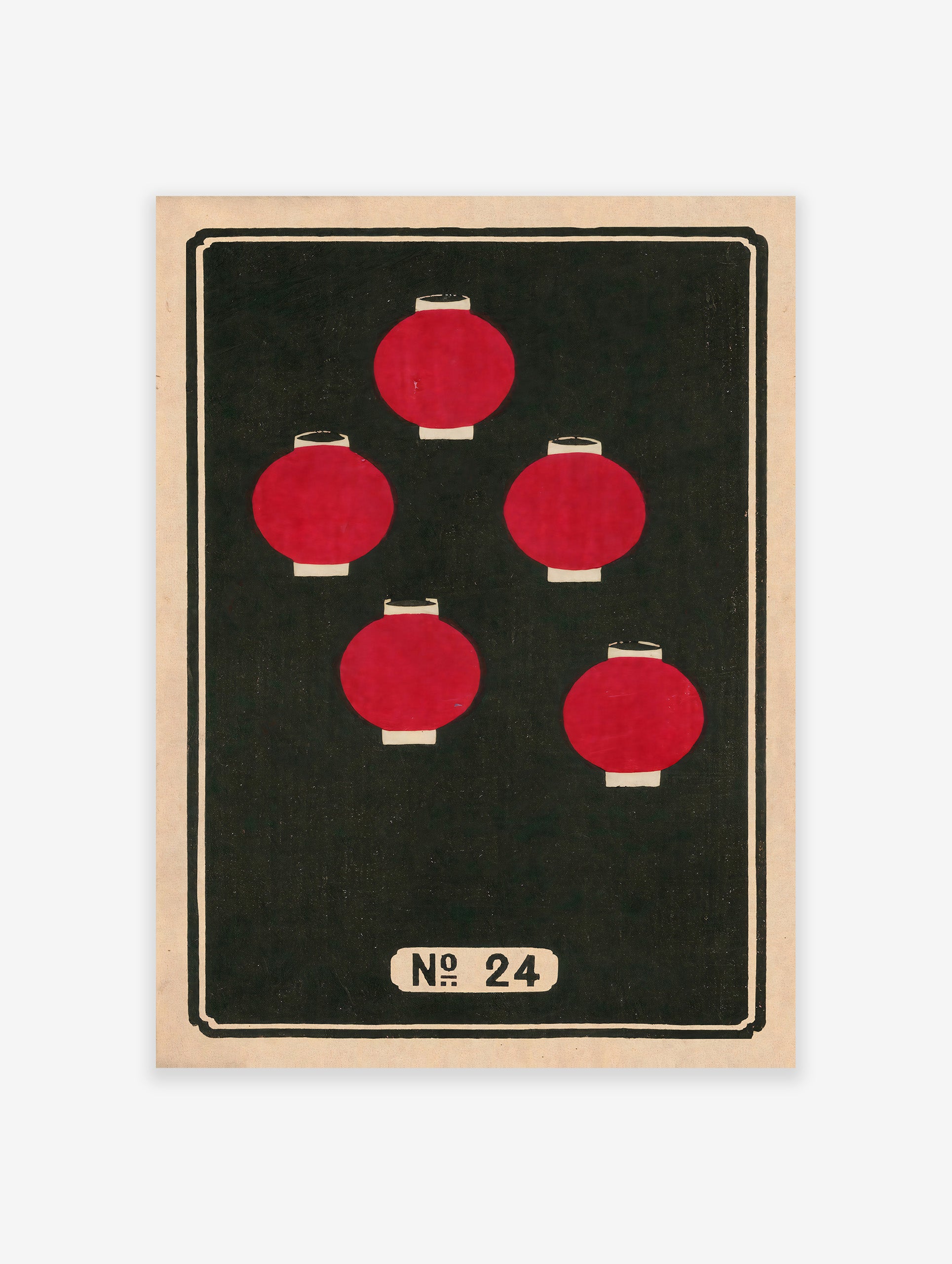 Illuminate your space with this mesmerizing Night Fireworks no. 24 Print by Jinta Hirayama, featuring a striking red Japanese lantern against a black backdrop. Perfect for adding a touch of traditional Japanese charm to any room or setting.