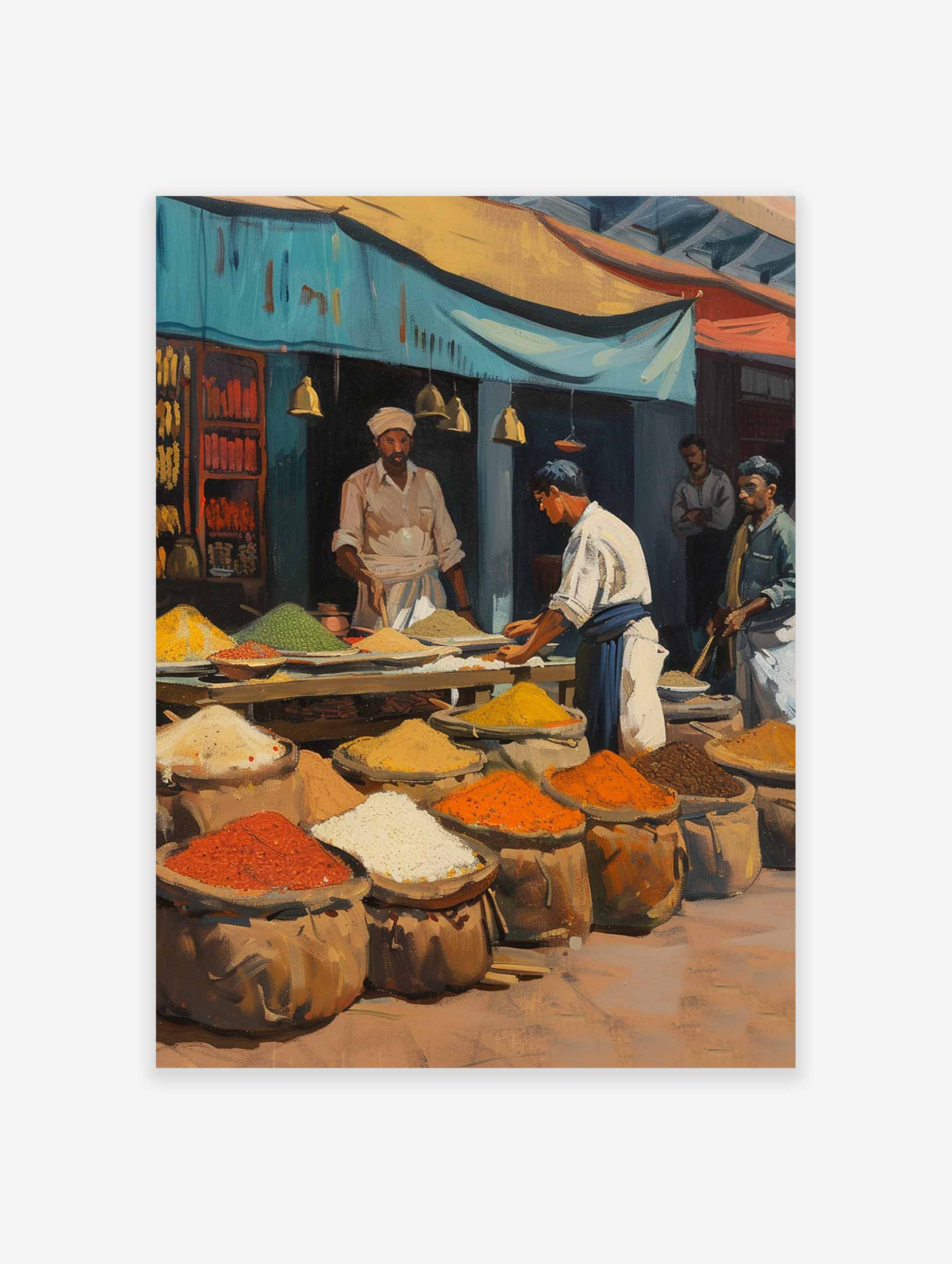 Enhance your space with our vibrant Indian Market Poster! With its vivid colors and intricate design, this poster will transport you to the bustling markets of India. Bring the beauty and energy of India into your home or office.