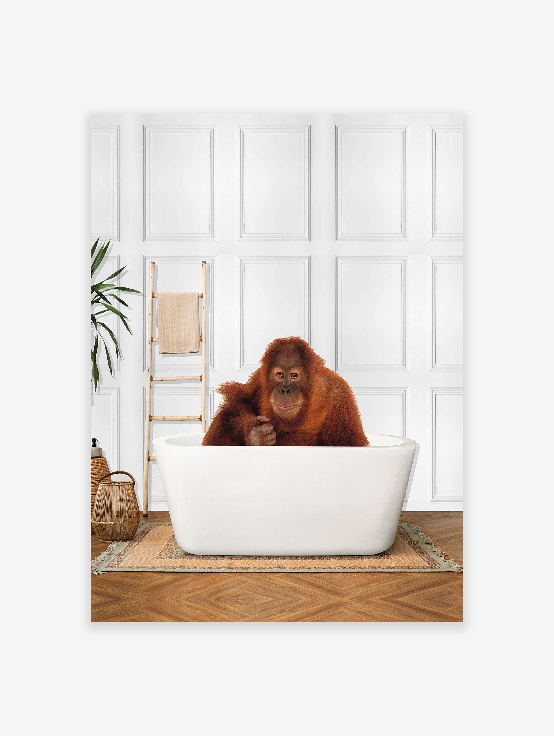 Add a playful touch to your space with this adorable animal wall art featuring an Orangutan enjoying a bath in the bathtub. Perfect for animal lovers and whimsical decor enthusiasts, this Orangutan poster will bring warmth and character to any room.