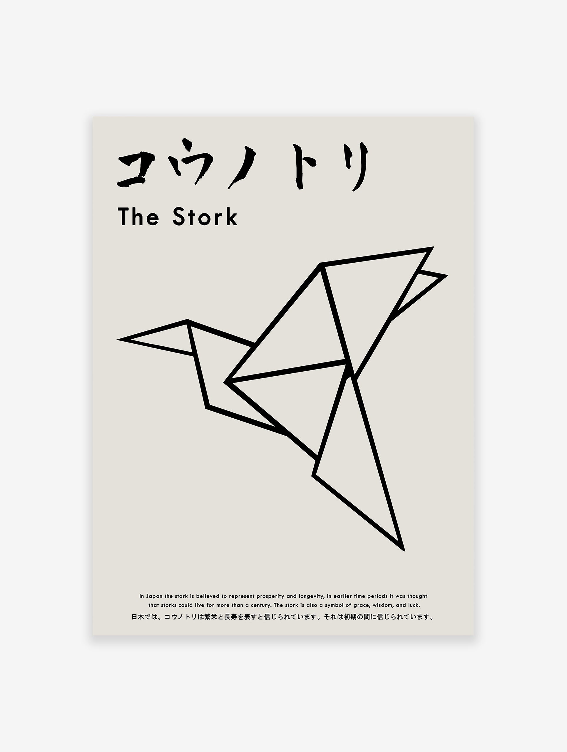 Elevate your decor with the delicate charm of Japanese craftsmanship embodied in this Origami Stork Print. Ideal for enthusiasts of Japanese art, this Japanese Origami Poster brings a touch of serenity and sophistication to any space.