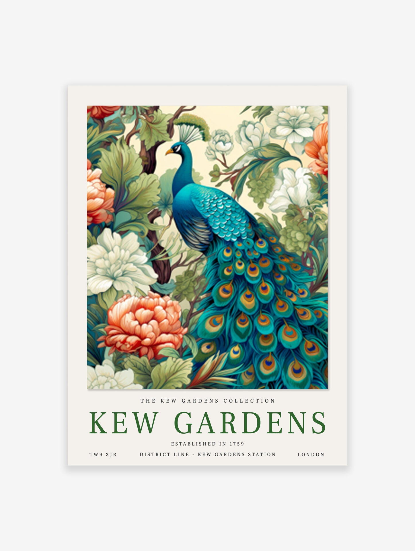 This captivating peacock print and Kew Gardens floral poster seamlessly blend elegance and nature, offering a sophisticated touch to your space with vibrant peacock imagery and lush botanicals, making it the ideal choice for those seeking a unique and stylish addition to their home decor.