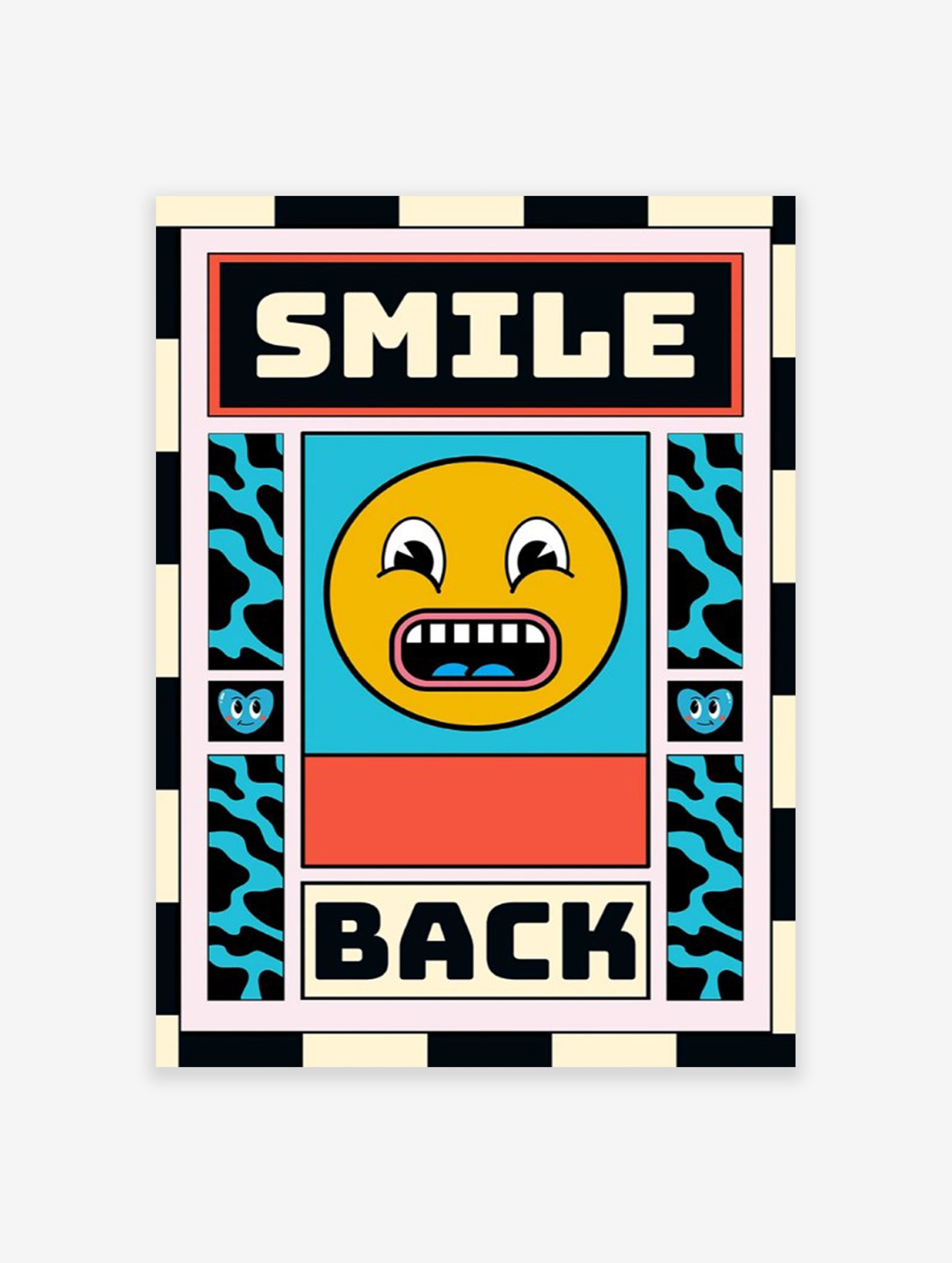 Brighten up your space with our "Smile Back" poster featuring a funny yellow smiley face and uplifting Smile Back quote, perfect for spreading positivity and happiness. Ideal for those seeking motivational wall art to add joy to their surroundings and inspire others to smile.