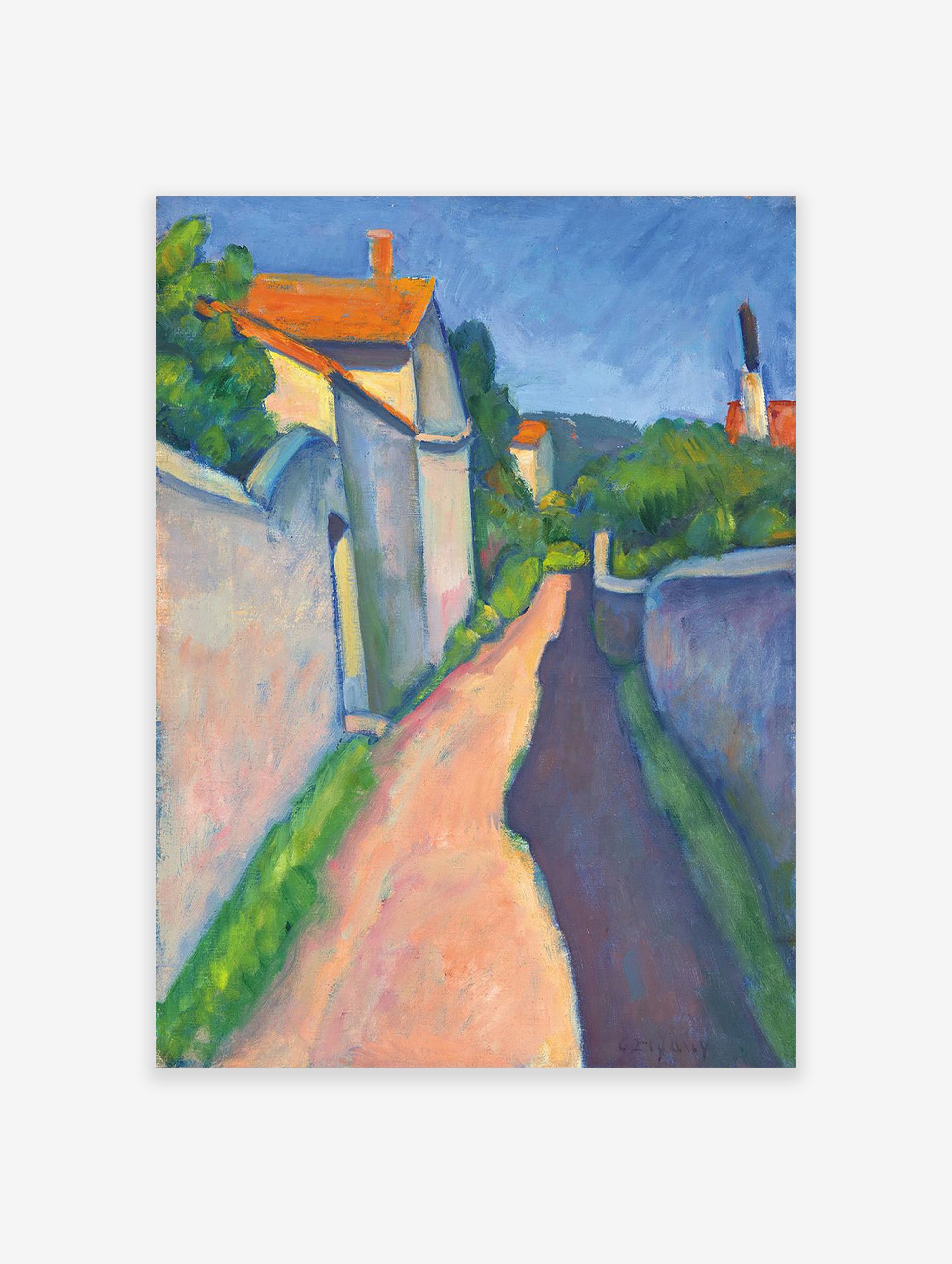Elevate your space with this captivating street poster by Dezso Czigany, showcasing a charming narrow street and house in soothing neutral tone, perfect for adding a touch of urban elegance to any room.