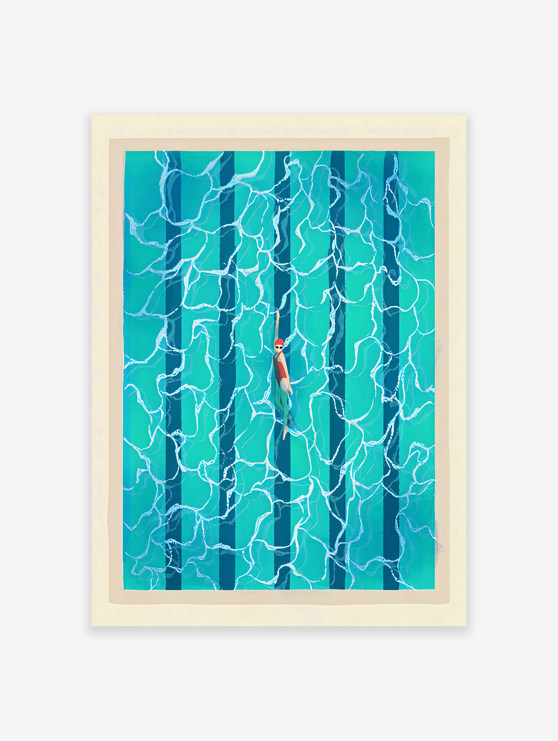 Elevate your interior design with this captivating Swimming Pool poster featuring a person doing lapse. Add a touch of relaxation and tranquility to your space with this stunning pool art, perfect for enhancing any modern home decor.