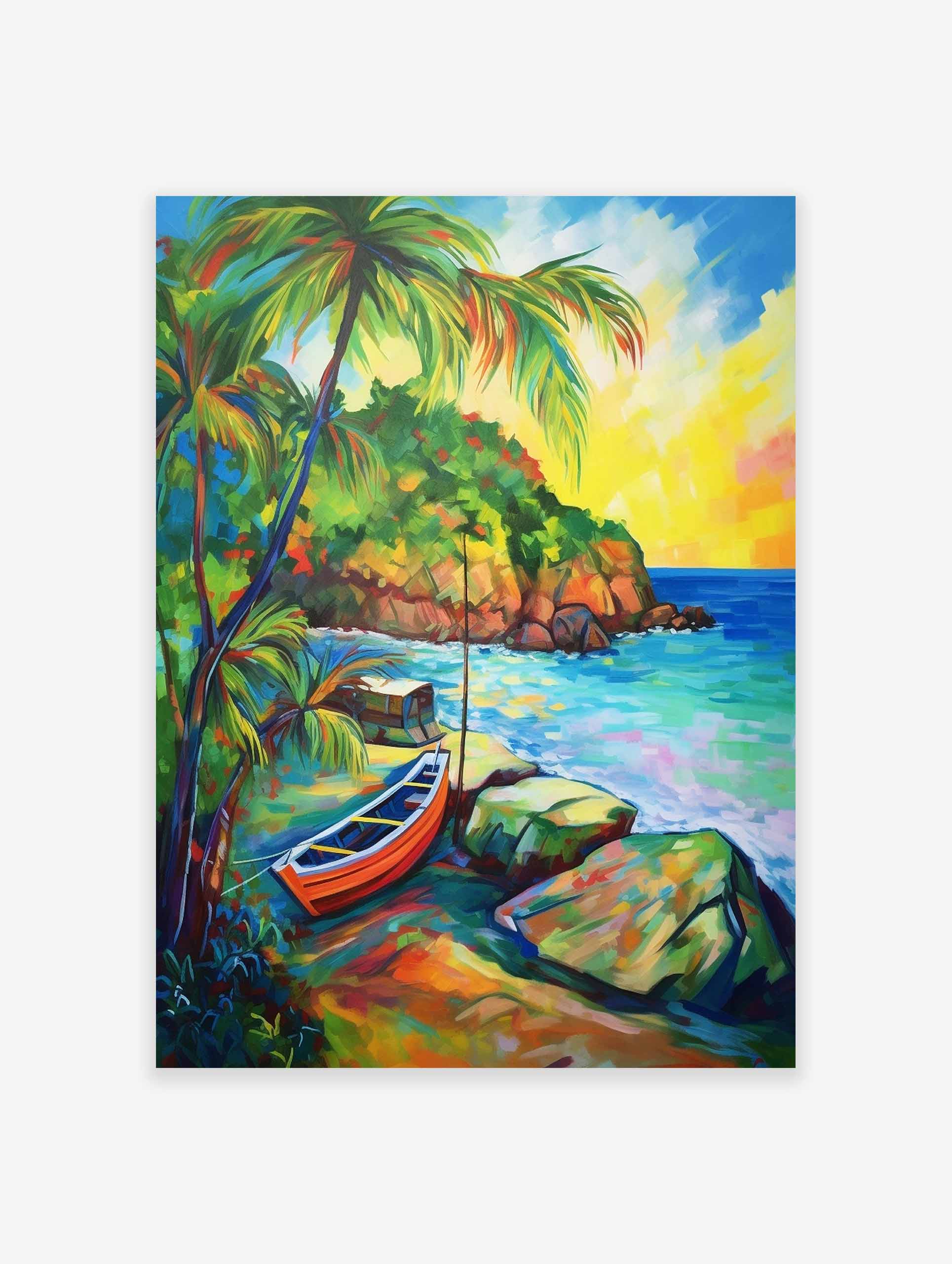Elevate your coastal decor with our captivating caribbean beach art print, showcasing serene seascapes, sandy shores, and vibrant sunsets, ideal for bringing tropical decor into your home.