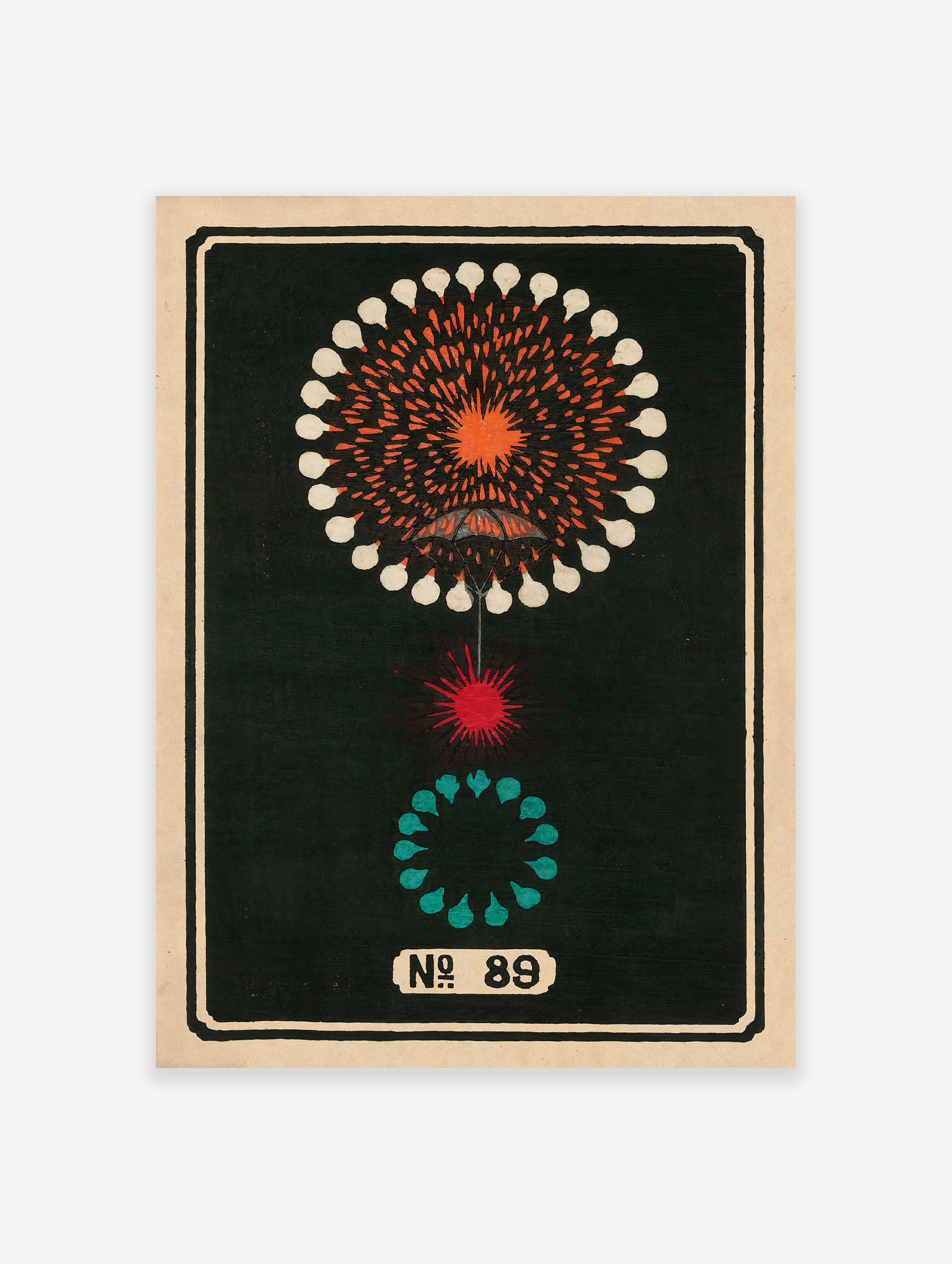 Experience the vibrant allure of Vintage Japanese Fireworks captured in this captivating poster, featuring intricate patterns against a sleek black backdrop, perfect for adding a touch of traditional Japanese charm to any space.