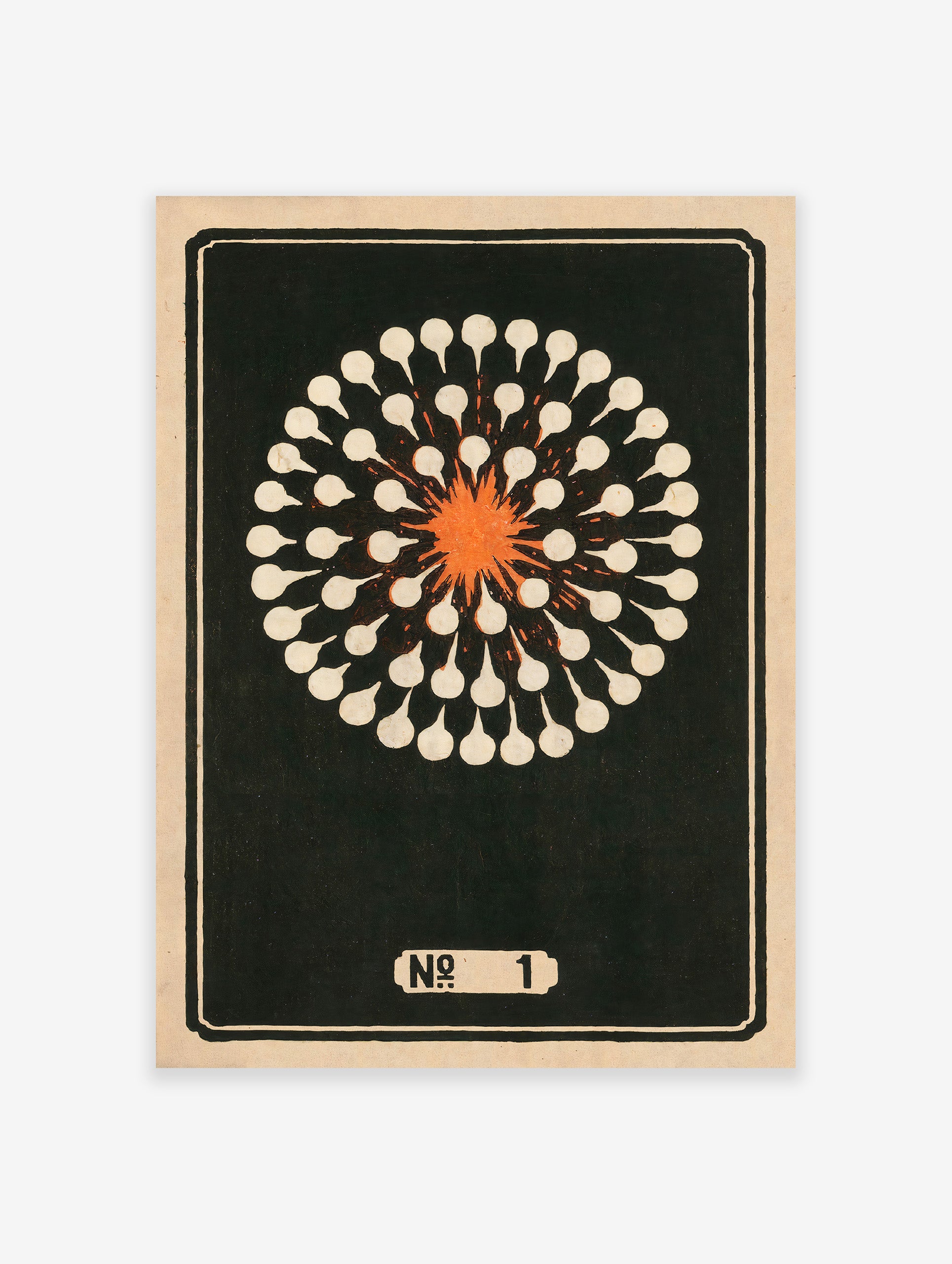 Experience the vibrant allure of Vintage Japanese Fireworks captured in this captivating poster, featuring intricate patterns against a sleek black backdrop, perfect for adding a touch of traditional Japanese charm to any space.