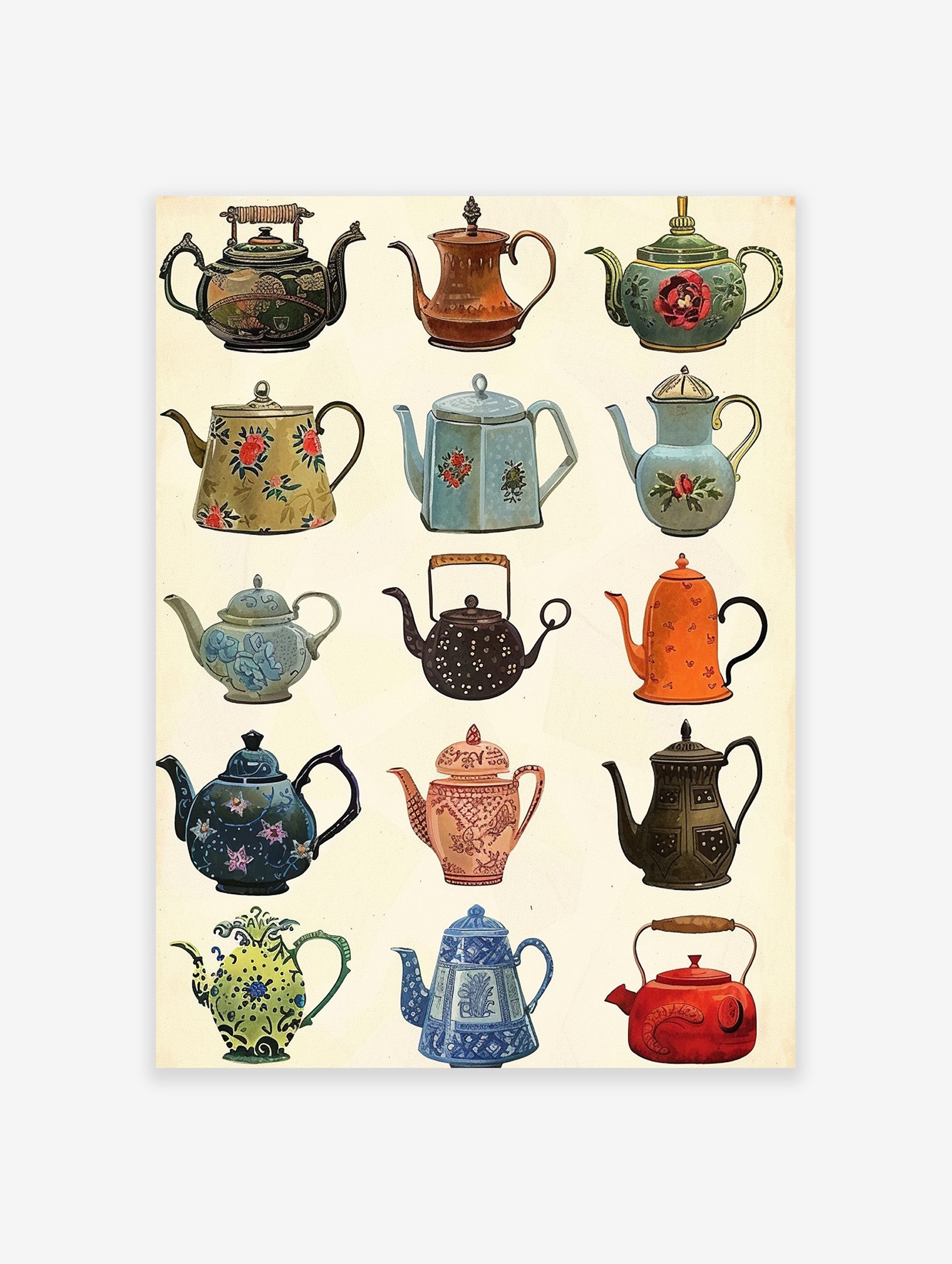 Enhance your kitchen decor with our Vintage Teapot Wall Art showcasing an array of charming vintage teapots, perfect for tea lovers and retro enthusiasts. Adorn your walls with timeless elegance and vintage charm.