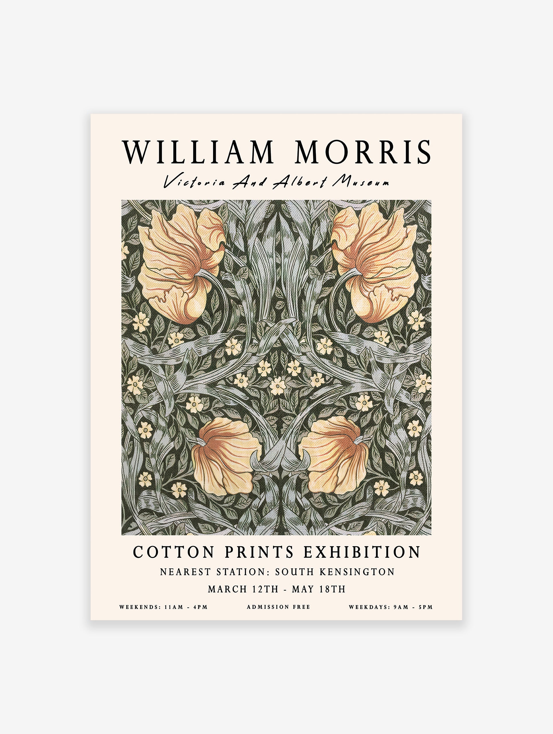 A timeless Exhibition Poster by William Morris, featuring intricate floral patterns that bring a touch of nature indoors. This stunning wall art piece adds a classic and sophisticated vibe to any room, making it a must-have for art enthusiasts and interior design enthusiasts alike.